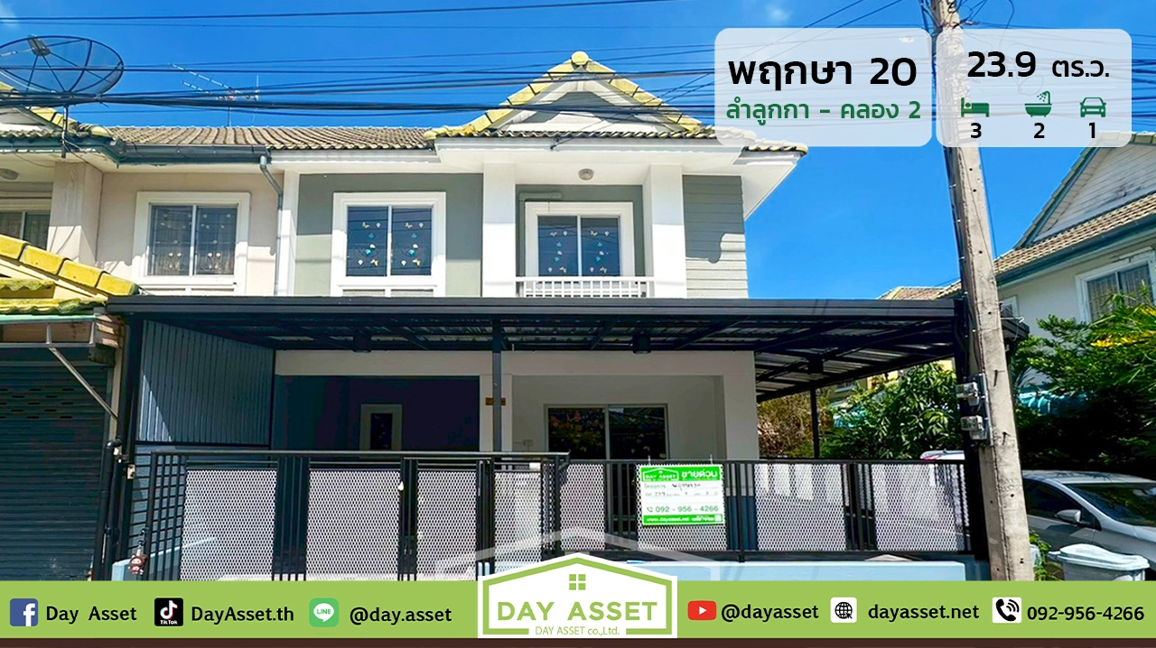 ขายทาวน์เฮาส์ 2 ชั้น หลังมุม โครงการบ้านพฤกษา 20 ลำลูกกา-คลอง 2 : Pruksa 20 Lumlukka Klong 2  การเดินทางสะดวกใกล้ทางด่วน เนื้อที 23.9 ตร.ว. ขายเพียง 2,190,000 ล้านบาท